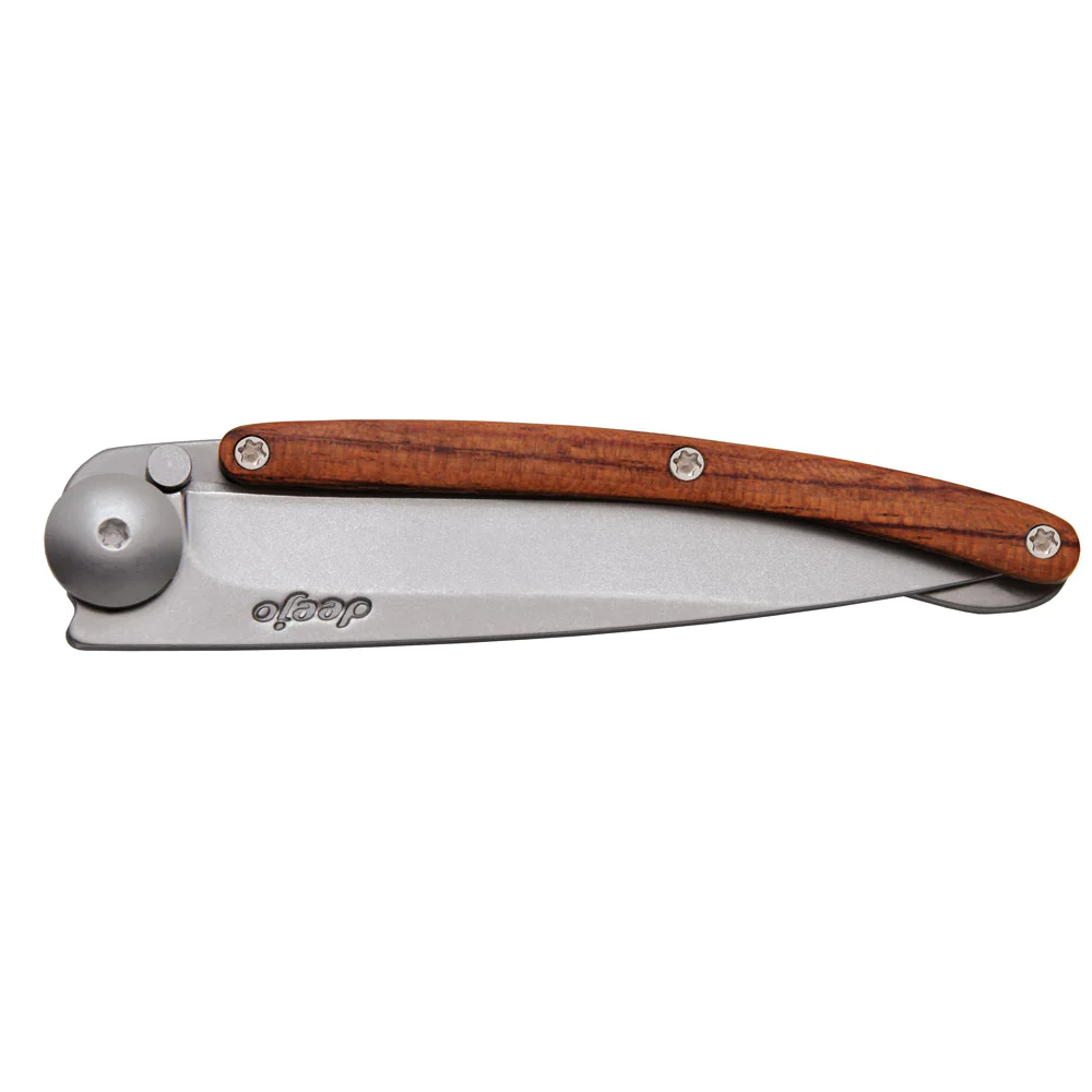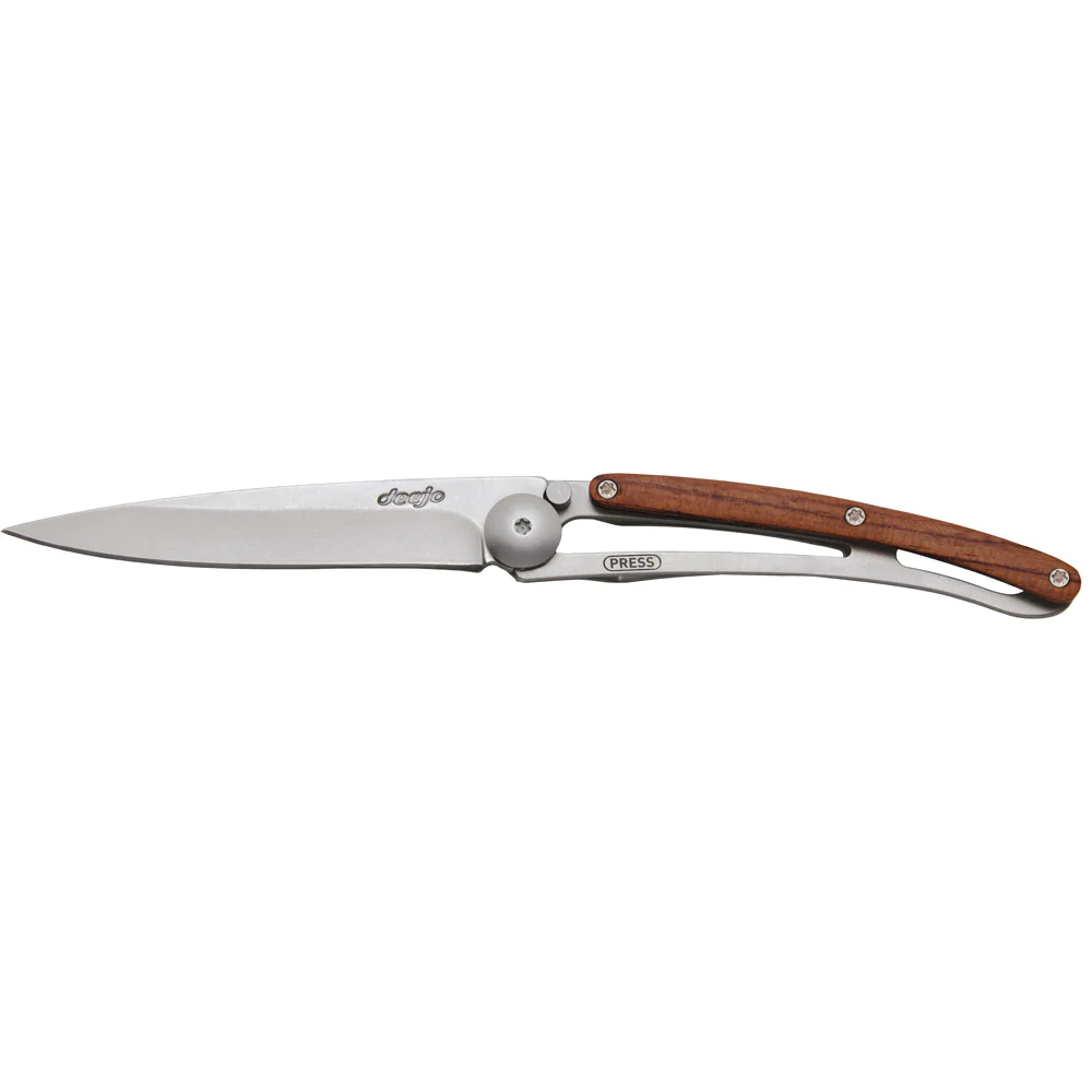 Im Jahr 2010 hat Stéphane Lebeau ein ultraleichtes Taschenmesser designt, dessen Gewicht mit dem eines Briefes vergleichbar ist. Warum? Weil man es so gerne jeden Tag in seine Hosen- oder Anzugtasche steckt und nicht das Gefühl hat einen Stein mit sich herumzuschleppen. Deejo Messer sind nach ihrem Gewicht benannt. Das geringe Gewicht wird durch die Konstruktion und nicht etwa durch eine geringere Größe oder spezielle Materialien erreicht.