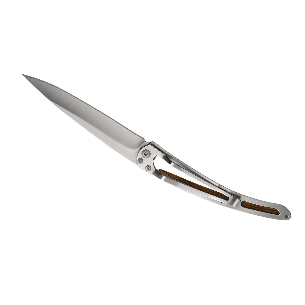 Im Jahr 2010 hat Stéphane Lebeau ein ultraleichtes Taschenmesser designt, dessen Gewicht mit dem eines Briefes vergleichbar ist. Warum? Weil man es so gerne jeden Tag in seine Hosen- oder Anzugtasche steckt und nicht das Gefühl hat einen Stein mit sich herumzuschleppen. Deejo Messer sind nach ihrem Gewicht benannt. Das geringe Gewicht wird durch die Konstruktion und nicht etwa durch eine geringere Größe oder spezielle Materialien erreicht.