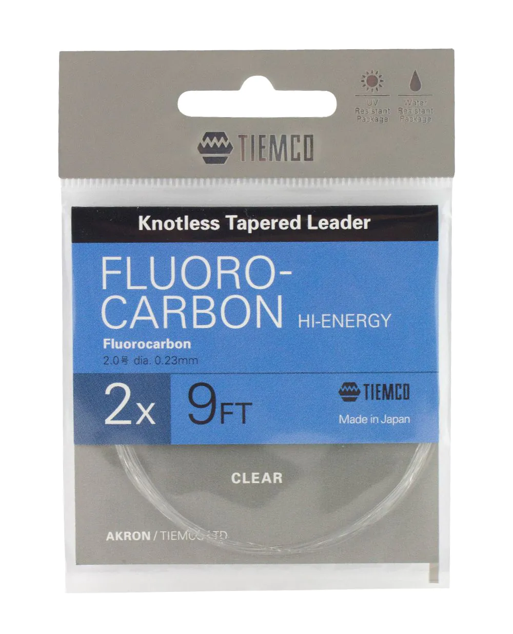 Das beste Fluorocarbon wird unserer Meinung nach in Japan hergestellt. TIEMCO bürgt für diese Super-Qualität. Die knotenlos gezogenen AKRON Fluorocarbon Hi-Energy Vorfächer sind für den Fisch nahezu unsichtbar, sind etwas steifer als herkömmliche Nylon-Vorfächer und verfügen damit über sehr gute Abrolleigenschaften. Das erleichtert Ihnen eine exakte Präsentation. Zudem verfügen die HI-ENERGY-Vorfächer über eine exzellente Abriebfestigkeit. Stärke Spitzendurchmesser (mm) Tragkraft (kg) 03X 0,35 9,8 02X 0,33 8,5 01X 0,30 7,1 0X 0,28 6,5 1X 0,26 6,0 2X 0,23 4,9 3X 0,20 3,7 4X 0,16 2,6 5X 0,14 2,0 6X 0,12 1,5