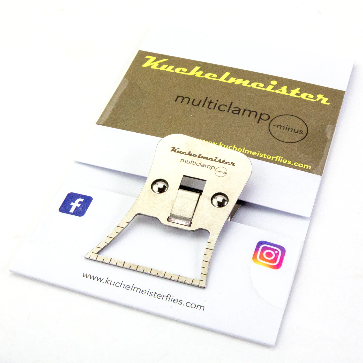 Die kleine Schwester der multiclamp......mit noch mehr Klemmkraft um auch die feinsten Haare direkt aus dem Balg aufnehmen zu können.Diese moderne Materialklemme ist komplett aus hochfestem nichtrostenden Stahl gefertigt. Die Oberfläche ist blendfrei oberflächenbehandelt. Das Design ist sehr modern und auf Funktionalität getrimmt. Der Klemmbereich ist offengehalten, um das eingeklemmte Material mit Daumen und Zeigefinger mit Leichtigkeit und ohne zusätzliches Werkzeug zu bündeln und zu bearbeiten. Mit der spitz designten Fom der Klemmbacken ist es möglich direkt ins Rehhaar zu fahren, um es über die gesdamte Backenbreite in die Dubbingschlaufe zu nehmen. Auch künstliches Material wie Craft-Fur, Fake-Fur kann direkt mit der "multiclamp" aus der Matte in die Klemme aufgenommen werden. Somit ist nicht nur die traditionelle Verarbeitung von CDC Federn mit der multiclamp gegeben. Es werden auch Fliegenbinder damit angesprochen, die zum Binden von Streamern viel künstliches Material in die Schlaufe bringen müssen. Auf den Klemmbacken ist per Laser ein Lineal mit einer in 2,5mm Einteilung eingraviert, damit das Material immer in der gleichen Menge eingebunden werden kann. Die "-minus" Klemme kommt zusätzlich mit 2 seitlichen Linealen, um auch die Länge der eingeklemmten Materialien abmessen zu können. Einen weitereren Vorteil bringt die multiclamp beim Verarbeiten von gröberen Haardubbing. Haare können bedingt durch den kleinen Radius an den Klemmkanten direkt lose vom Bindetisch aufgenommen werden.Mehr als nur eine Materialklemme - mit der multiclamp -minus erhalten Sie ein innovatives und multifunktionales Werkzeug in die Hand, dass die Qualität bisheriger Klemmwerkzeuge übertrifft. Ein "Must Have" für Ihren Bindetisch.Zusammenfassung der VorteileHochfeste blendfreie AusführungKleinere und feinere, aber sehr kräftige Klemme.Top Qualität, gesamte Klemme aus nichtrostendem StahlHohe KlemmkraftOffener KlemmbereichMaterial kann direkt aus dem Fell aufgenommen werdenMaterial kann durch den offenen Klemmbereich direkt zusammengeschoben werdenhorizotales und vertikales Lineal an den Klemmbacken um Materialmenge und Länge immer gleich zu haltenLose Haare können direkt vom Bindetisch aufgenommen werdenMade in GermanyDie Fliegenbinde Tools von Christian Kuchelmeister aus der Multi-Serie sind Premium Bindewerkzeuge der Extraklasse. Vielseitig, robust und für praxisgerechte Bindetechniken gemacht. Präzise gefertigt in Deutschland.