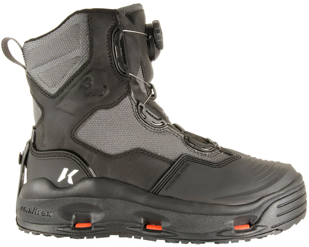Der neue Korkers Darkhorse Watschuh vereint viele moderne Technologien, um dem Angler einen hervorragenden Watschuh bieten zu können. Der Darkhorse verfügt über das M2 BOA Schnell-Schnürsystem, das OMNITRAX Wechselsohlensystem, tiefergelegte Nähte an der Kappe und das 3 Ply Fit System. Dadurch wird der Fuß an der Ferse gesichert und bietet einen unglaublich guten Halt im Schuh.
