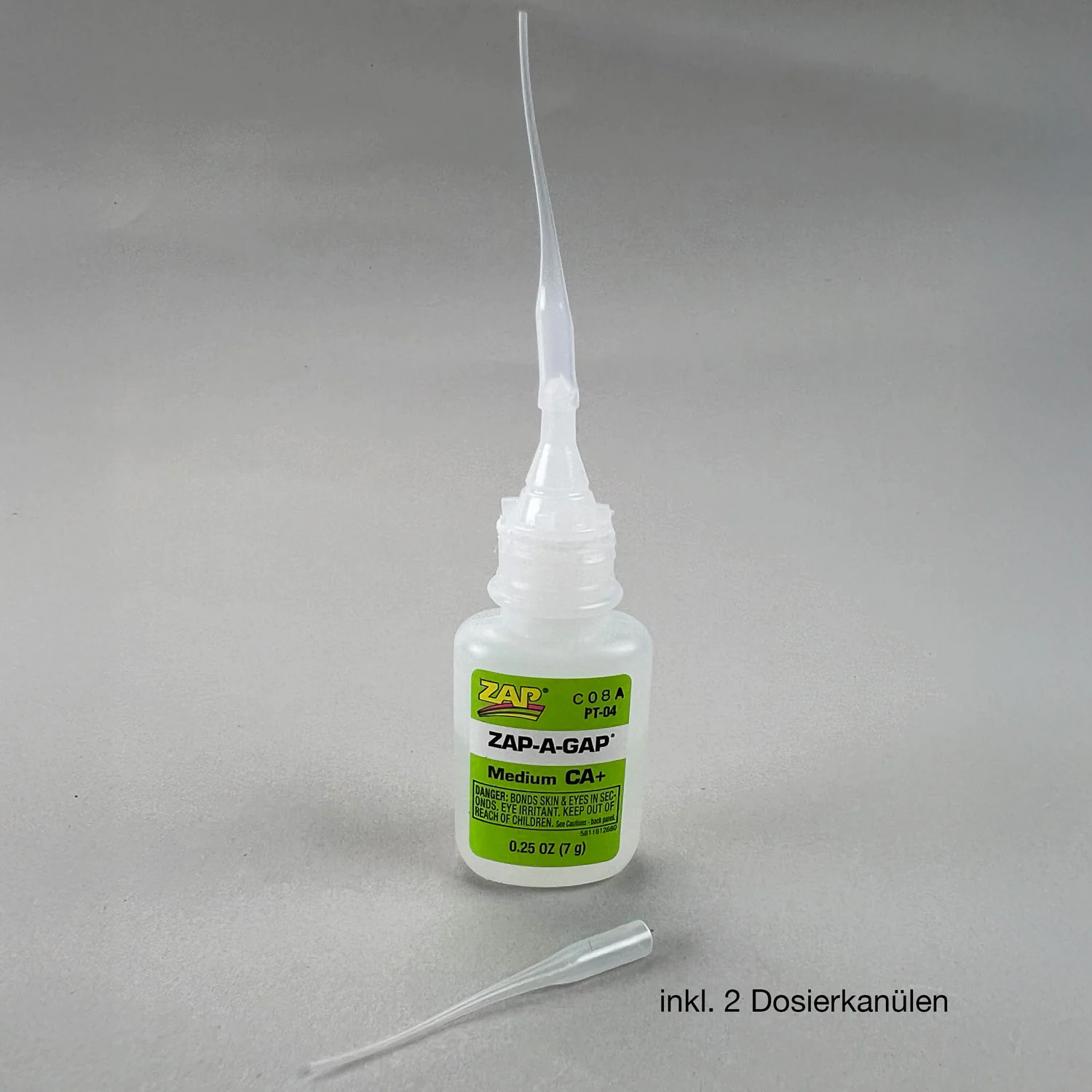 Durch zwei mitgelieferte Kanülen kann der Kleber sehr fein dosiert werden. Im Gegensatz zu vielen anderen handelsüblichen Sekundenklebern ist dieser absolut wasserfest und bleibt nach Aushärtung elastisch.