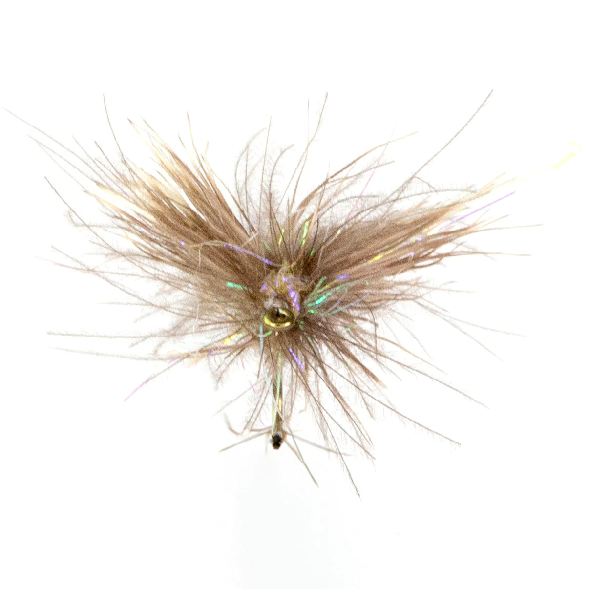 As its name suggests, this pattern represents a fluttering caddis fly in the process of emerging. A sedge after hatching from the pupa skin during its first, still clumsy attempts to take off. But also a female buzzing from the water surface during the spawning process.