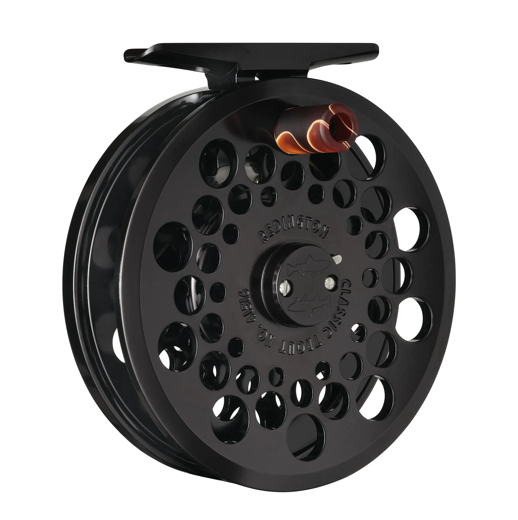 Classic click drag reel for delicate trout fishingThe Redington Classic Trout is a lightweight fly reel built for precise trout fishing with dry flies, nymphs and small streamers. The reel Features an adjustable double-clicker mechanism with enough drag to stop over-spooling, enough audible click to let your buddy downstream know you’re on, and enough palm-able rim to keep it all under control. Constructed from machined 6061-T6 aluminum, the ported mid-arbor, narrow spool design keeps it lightweight, durable and delivers quick line pickup, while Classic’s vintage vibe meets modern advances make it the perfect fit for a lifetime of good times on the water. Features of the Redington Classic Trout Fly Reel:CNC machined and anodized 6061-T6 aluminum Adjustable double-clicker drag system Large diameter, narrow width, mid-arbor design Traditional aesthetics Lightweight, less-is-more feel Low weight for balanced light rod SetupsDetails of the avaiable models:ModelLine ClassCapacityDiameterWeightClassic Trout 2/3/4# 2 - 4WF4 + 100yds/20lb7,87cm (3.1in)99g (3.5oz)Classic Trout 4/5/6# 4 - 6WF6 + 100yds/20lb8,89cm (3.5in)119g (4.2oz)