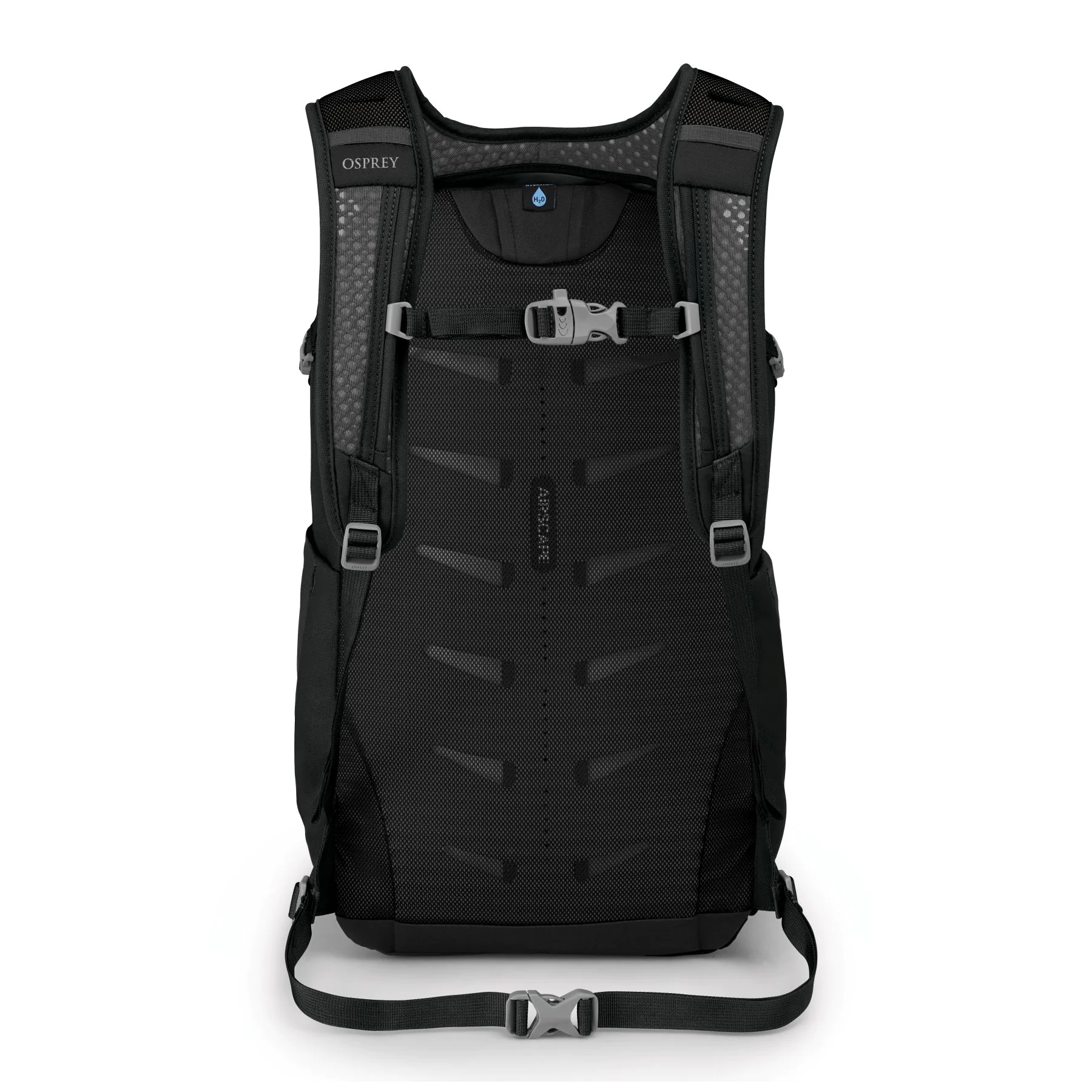 - Spacer mesh harness with integrated handle.Additional die-cut EVA foam padding (Daylite® Plus only). Adjustable sternum strap with whistle