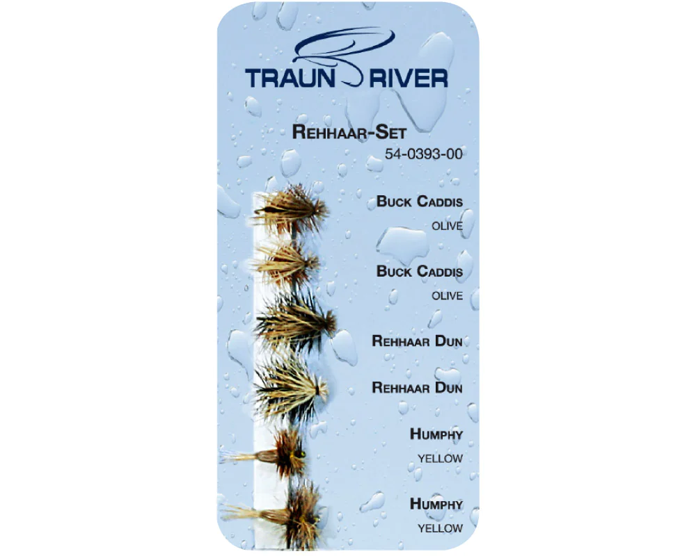 Da Rehhaare hohl und mit einer natürlichen Fettschicht versehen sind, schwimmen diese Fliegen besonders gut, ohne zusätzlich gefettet werden zu müssen. Die in diesem Set enthaltenen Muster sind zudem ausgesprochen universell einzusetzen.