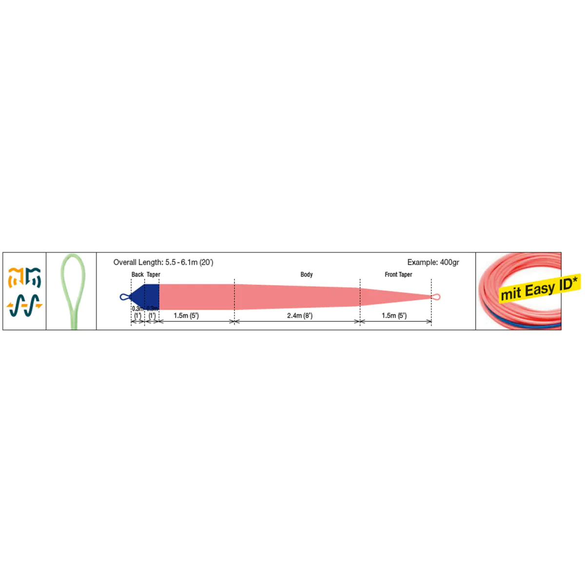 | 425gr | 6wt | Salmon/Blue | 20ft (6.1m) | Float |