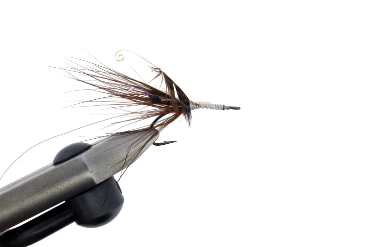 Take a feather, tie it in and turn it to form the back part of the fly.3.