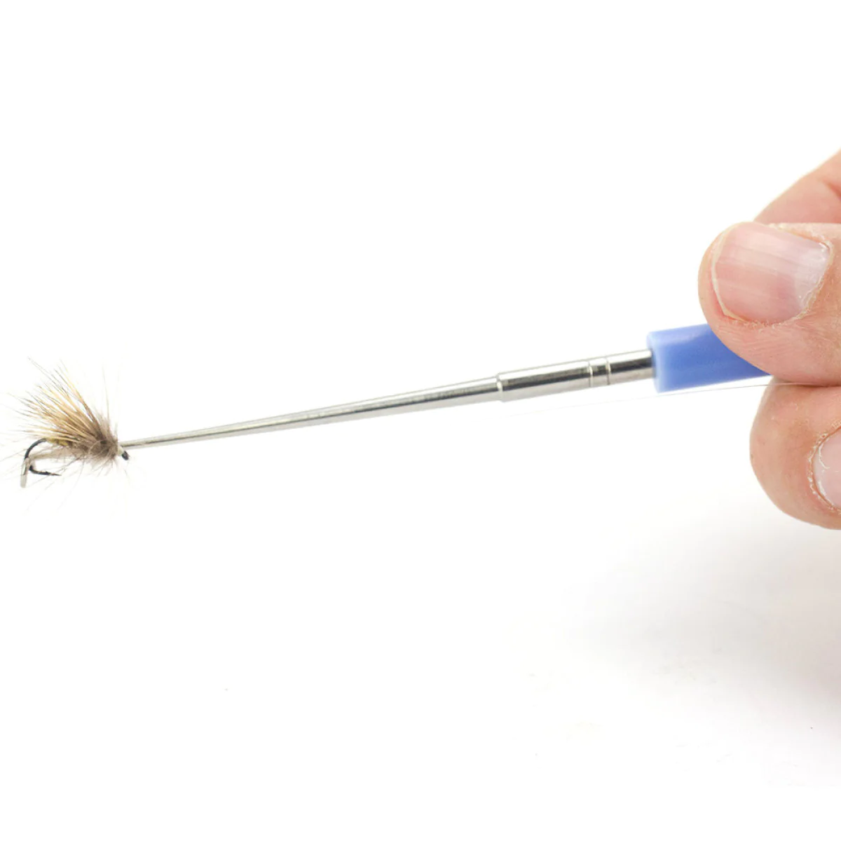 This little tool will help you to remove hooks with ease. It is perfectly usable for dry flies or small nymphs. Just guide the loop over the tippet. Then you slide it over your eg dry fly to the bent of the hook and you can remove the hook within sconds. You do not need to take the fish out of the water.