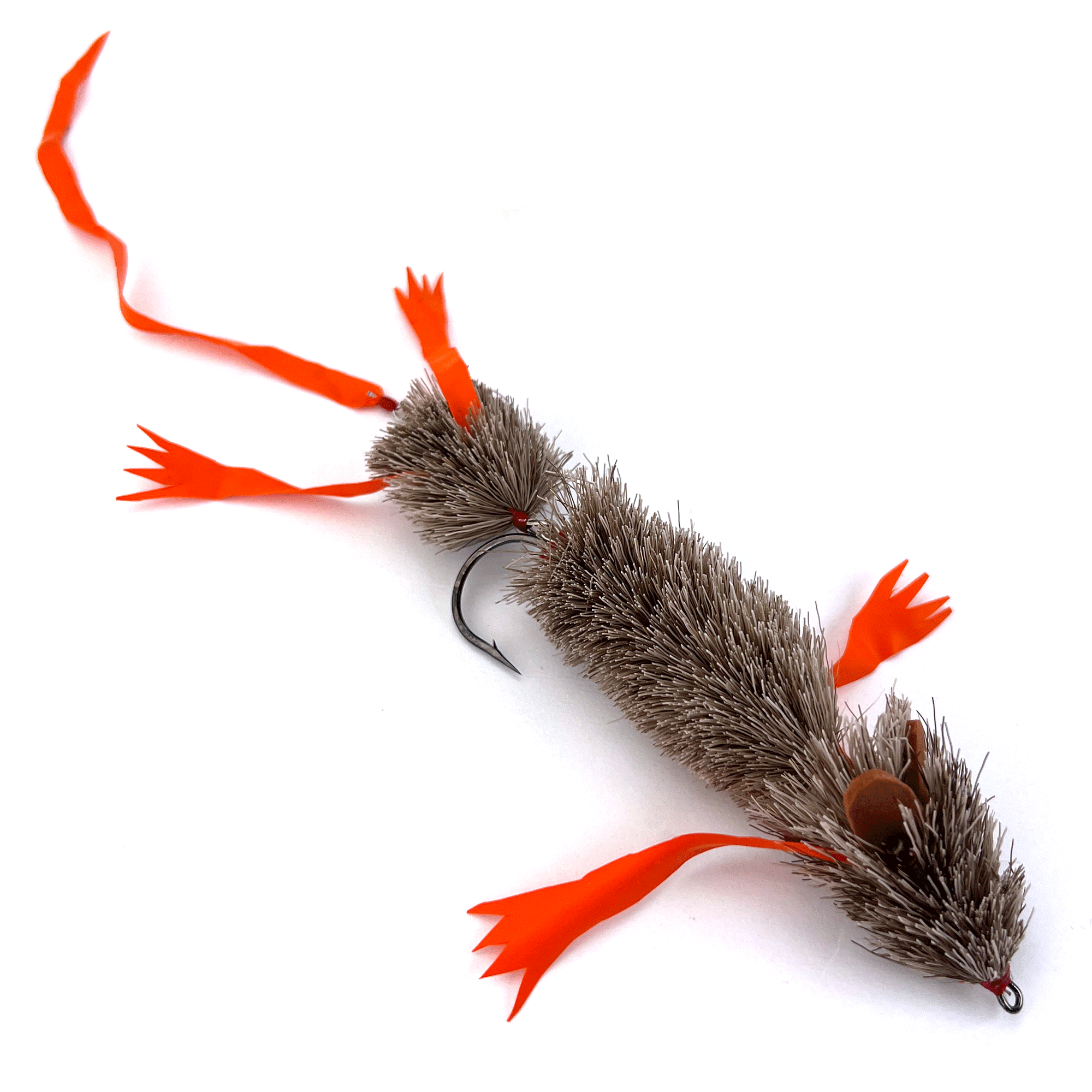 This mouse imitation offers a fantastic surface action. This large streamer is perfect for large predator fish like Hucho, big pike or taimen. It imitates a swimming mouse or rat. This can be fished during warmer day temperatures.