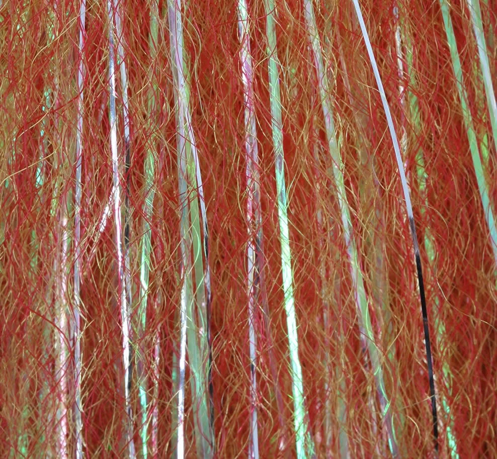 We were immediately impressed by the new material. The slightly crimped material is a great mix of different fibers with a very slight flash component. In addition, the material itself has a color gradient. This creates great and catchy designs. This is an absolute must-have streamer material. Length: ca. 24 cm