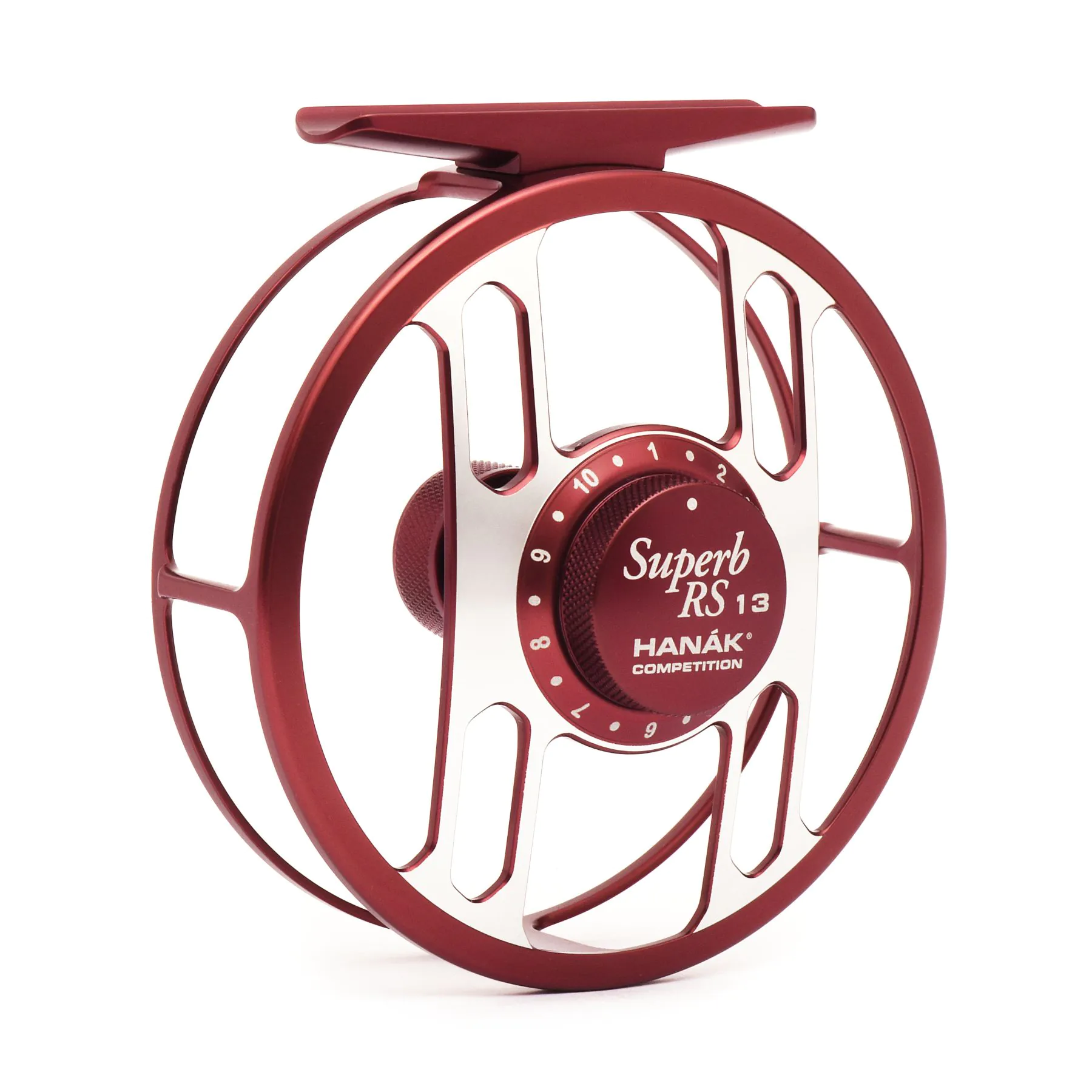Ultra modern all-metal extra-large-arbor reel made of aviation aluminium alloy in combination with elements made of stainless steel. Exclusive H-design commemorates the 25th anniversary of the founding of HANÁK Competition, while the hexagon pattern of turned holes refers to the structure of the Graphene, the latest top material used for building the Superb RS rods. The large diameter of the spool reduces tangling of the leader and line and reduces their wear and speeds up winding. Precisely manufactured closed cage prevents the long thin nymphing rigs to be pulled out. Smooth running is ensured by a one-way roller super bearing. Unrivaled sensitive and precisely adjustable carbon drag allows safe use of fine tippets.