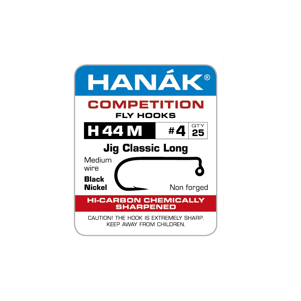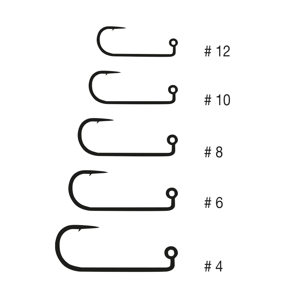 Ein klassischer Jighaken mit langem Schenkel und mit 90° Winkel zum Öhr. Er besitzt einen mittelstarken Draht und einen Widerhaken. Der Haken ist ideal für kleinere Jig-Streamer, z.B. Wooly Bugger Jig.