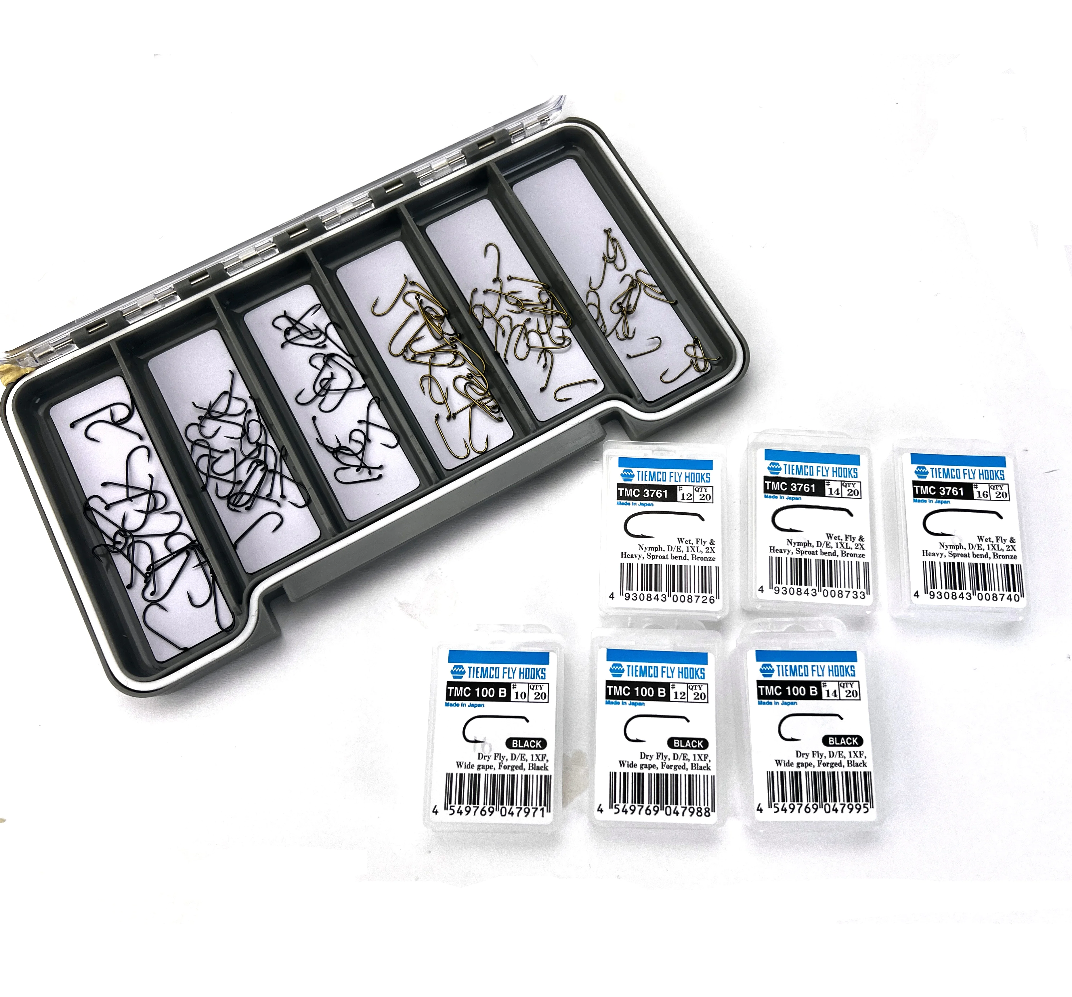 Hier erhalten Sie 3x den Trockenfliegenhaken TMC 100 B in den Größen #10, #12, #14 und 3x den Nymphhaken TMC 3761 in den Größen #12, #14, und #16. Die Hakenfächer sind magnetisch.