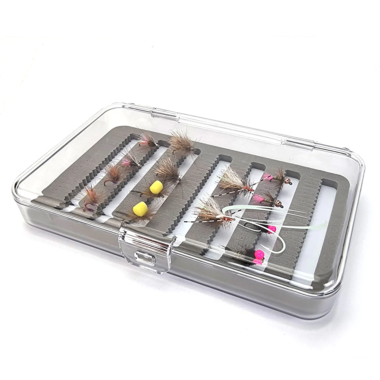 Diese mittelgroße, transparente Fliegenbox aus leichtem und robusten Polycarbonat ist ideal für Nymphen und Trockenfliegen. Die Fliegendose reicht aus, um einen ganzen Tag mit verschiedensten Mustern am Wasser erfolgreich zu sein. Durch den transparenten Klarsichtdeckel haben Sie Ihre Fliegenmuster immer im Blick.