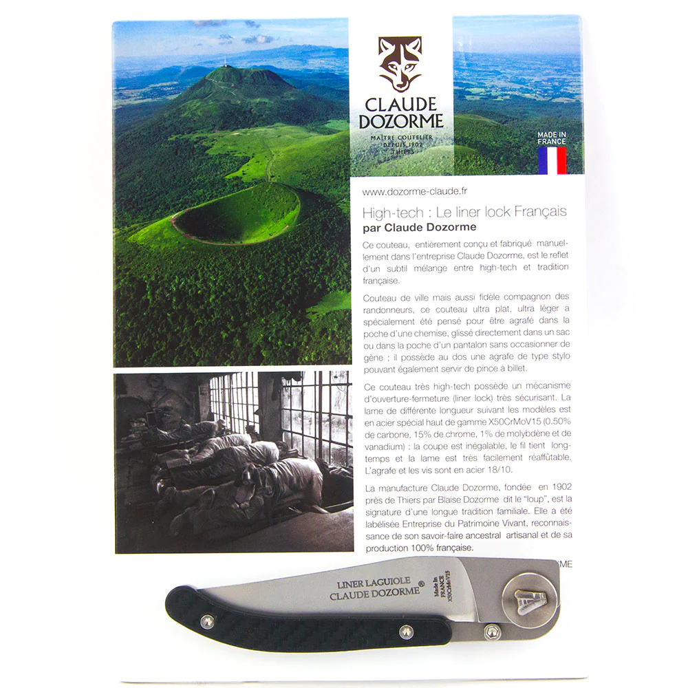 Die Liner Lock Taschenmesserserie ist das Flaggschiff des Familienunternehmens Claude Dozorme. Es besticht durch sein elegantes Design. Das Liner Lock-Taschenmesser von Claude Dozorme ist ultraflach und ultraleicht. Es passt gut in die Hosentasche oder kann mit seinem Clip einfach am Gürtel befestigt werden.