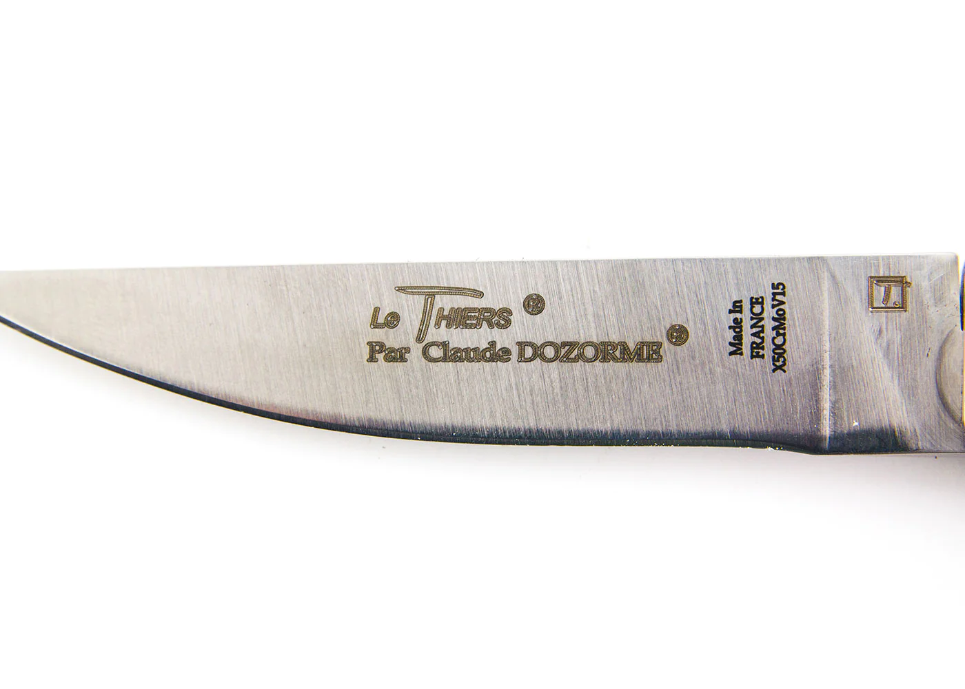 Moreover, Le Thiers® pocket knife blade is made from X50CrMoV15 steel. This very high quality steel gives this pocket knife an excellent cutting performance and it’s very easy to resharpen.