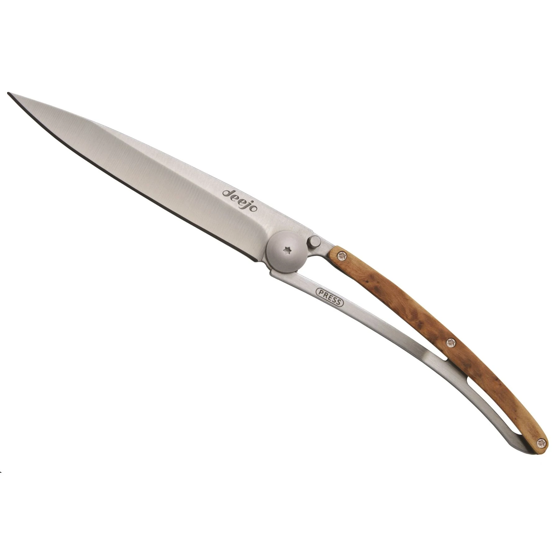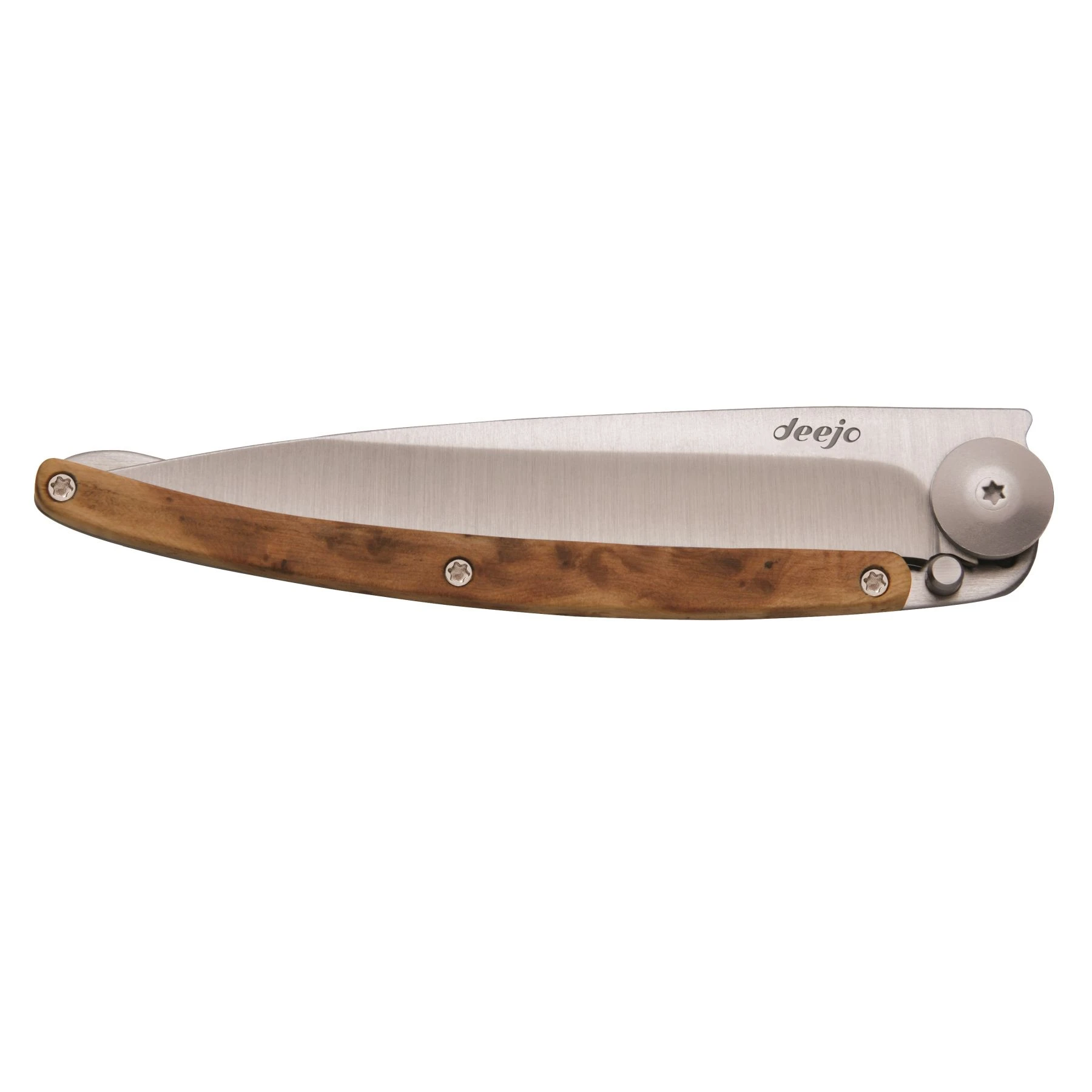 Im Jahr 2010 hat Stéphane Lebeau ein ultraleichtes Taschenmesser designt, dessen Gewicht mit dem eines Briefes vergleichbar ist. Warum? Weil man es so gerne jeden Tag in seine Hosen- oder Anzugtasche steckt und nicht das Gefühl hat einen Stein mit sich herumzuschleppen. Deejo Messer sind nach ihrem Gewicht benannt. Das geringe Gewicht wird durch die Konstruktion und nicht etwa durch eine geringere Größe oder spezielle Materialien erreicht.