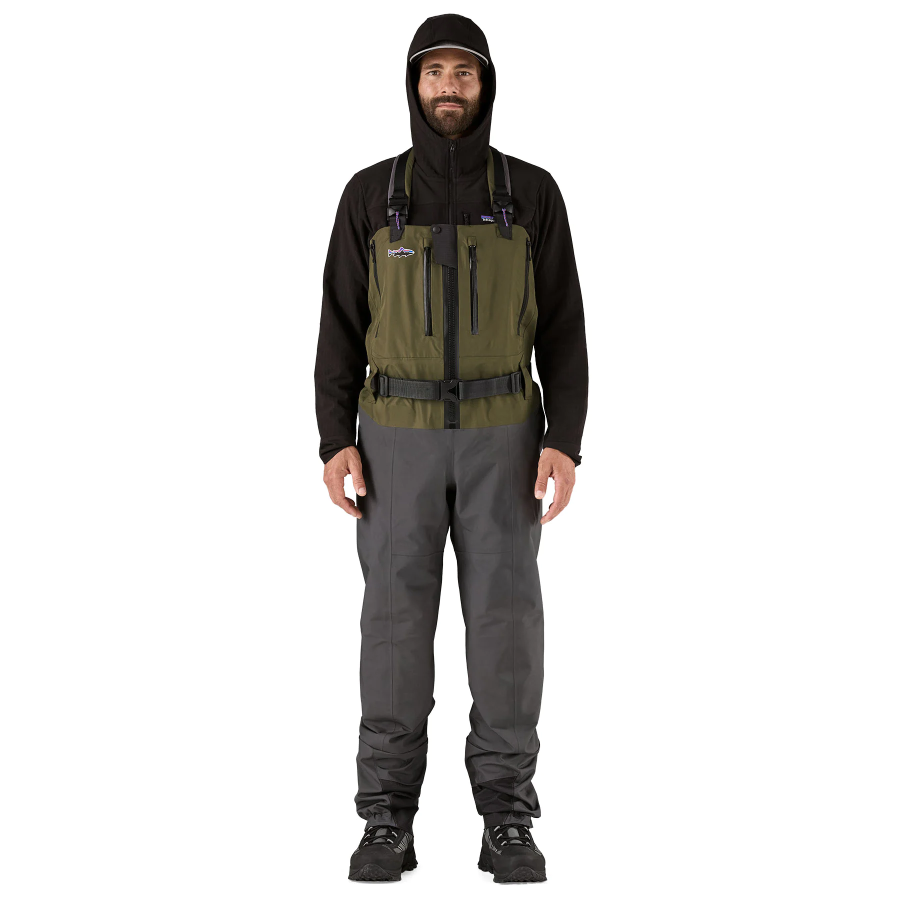 Patagonia's robusteste Ganzjahres-Wathose ist jetzt noch effizienter und in allen Kategorien besser - durch ein aktualisiertes Laminat mit DWR-Imprägnierung ohne den Einsatz von PFAS, eine ausgefeilte, durchdachte Ausstattung und eine innovative Weiterentwicklung von Größen. Dieses Modell ist mit einem Front-Zipper ausgestattet.