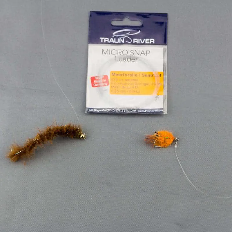 Dieses Vorfach ist nicht nur für die Küste geeignet, es kann überall dort eingesetzt werden, wo mit zwei Fliegen gleichzeitig gefischt werden darf. Der integrierte Micro Snap am Springer macht es möglich, die Fliegen schnell zu wechseln, ohne jedes Mal ein neues Vorfach machen zu müssen. Dadurch können Sie mehr Zeit für das Angeln aufwenden, als Knoten zu binden.