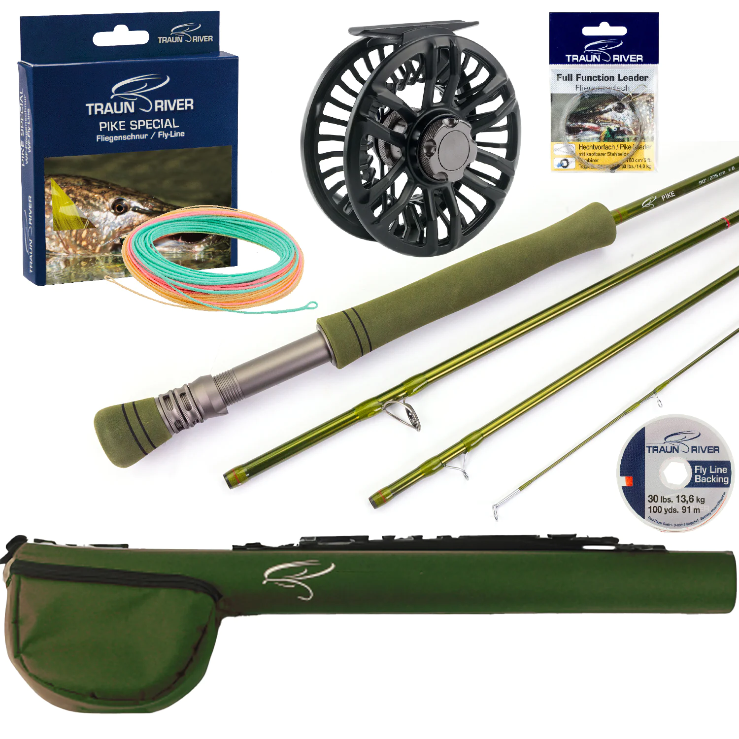 Das Outfit enthält Rute, Rolle, Backing, Schnur und & Hechtvorfach