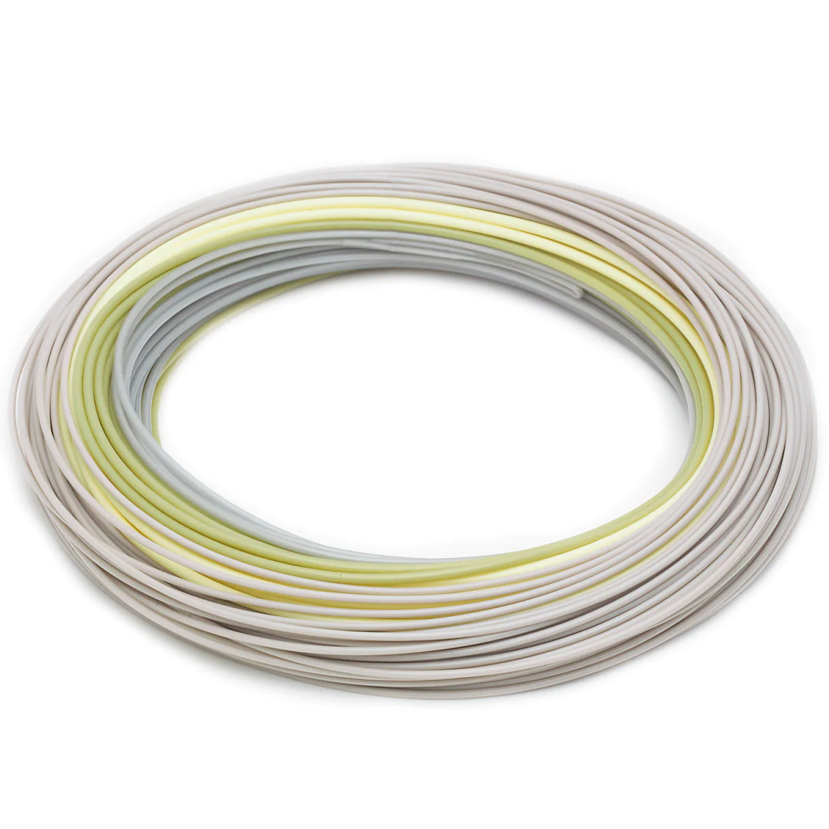 F/H/I (Floating/Hover/Intermediate): Schwimmende Hauptschnur mit einem 15ft (4,5m) "Hover" Sinkteil und einem 15ft (4,5m) klaren Intermediate Sinkteil. Perfekt für das Fischen in Tiefen von 0,5 bis 2,5m.
