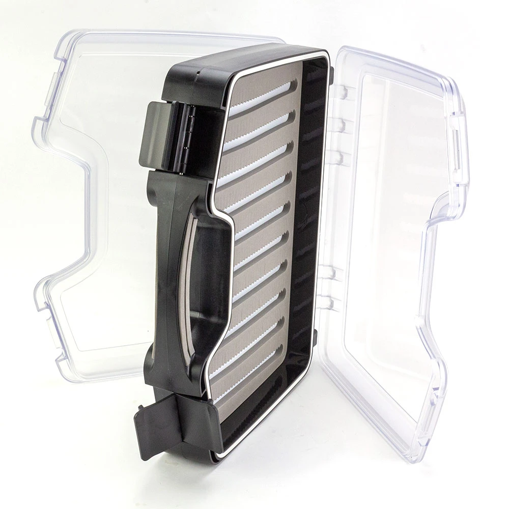 Dieser Fliegenkoffer ist perfekt für jeden, der möglichst viele große Fliegen oder Streamer mit ans Wasser nehmen möchte. Der Streamer Safe ist auf beiden Seiten mit jeweils 10 mikrogeschlitzten Schaumstoffreihen ausgestattet. Eine Seite hat einen höheren Abstand zum Klarsichtdeckel als die andere Seite. Der Koffer kann maximal 580 Fliegen aufbewahren.