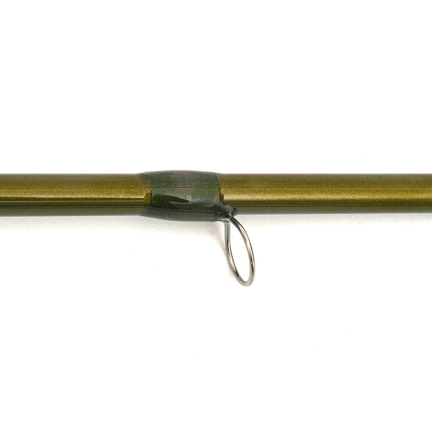 Graphene ist ein extrem dünnes material mit Hexagon Struktur. Durch diese Struktur ist das Material extrem belastbar. Die Materialkraft von Graphene liegt ca. 200 höher also von Stahl. Jede Rute wird mit einem luxuirösen 5-eckigen Rutenrohr geliefert. Das Rutenrohr bietet Unterteilungen für jedes Rutenteil. Spezielle ANT (anti tangle) Führungsringe und Vorfachöse sorgen dafür, dass sich Vorfächer und Schnur weniger verfangen. Hochflexible Titanium Einsteg RECOIL Titanflex Ringe - Made in USA