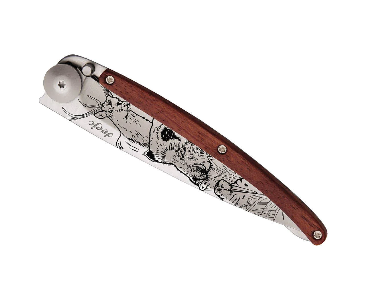Im Jahr 2010 hat Stéphane Lebeau ein ultraleichtes Taschenmesser designt, dessen Gewicht mit dem eines Briefes vergleichbar ist. Warum? Weil man es so gerne jeden Tag in seine Hosen- oder Anzugtasche steckt und nicht das Gefühl hat einen Stein mit sich herumzuschleppen. Deejo Messer sind nach ihrem Gewicht benannt. Das geringe Gewicht wird durch die Konstruktion und nicht etwa durch eine geringere Größe oder spezielle Materialien erreicht.