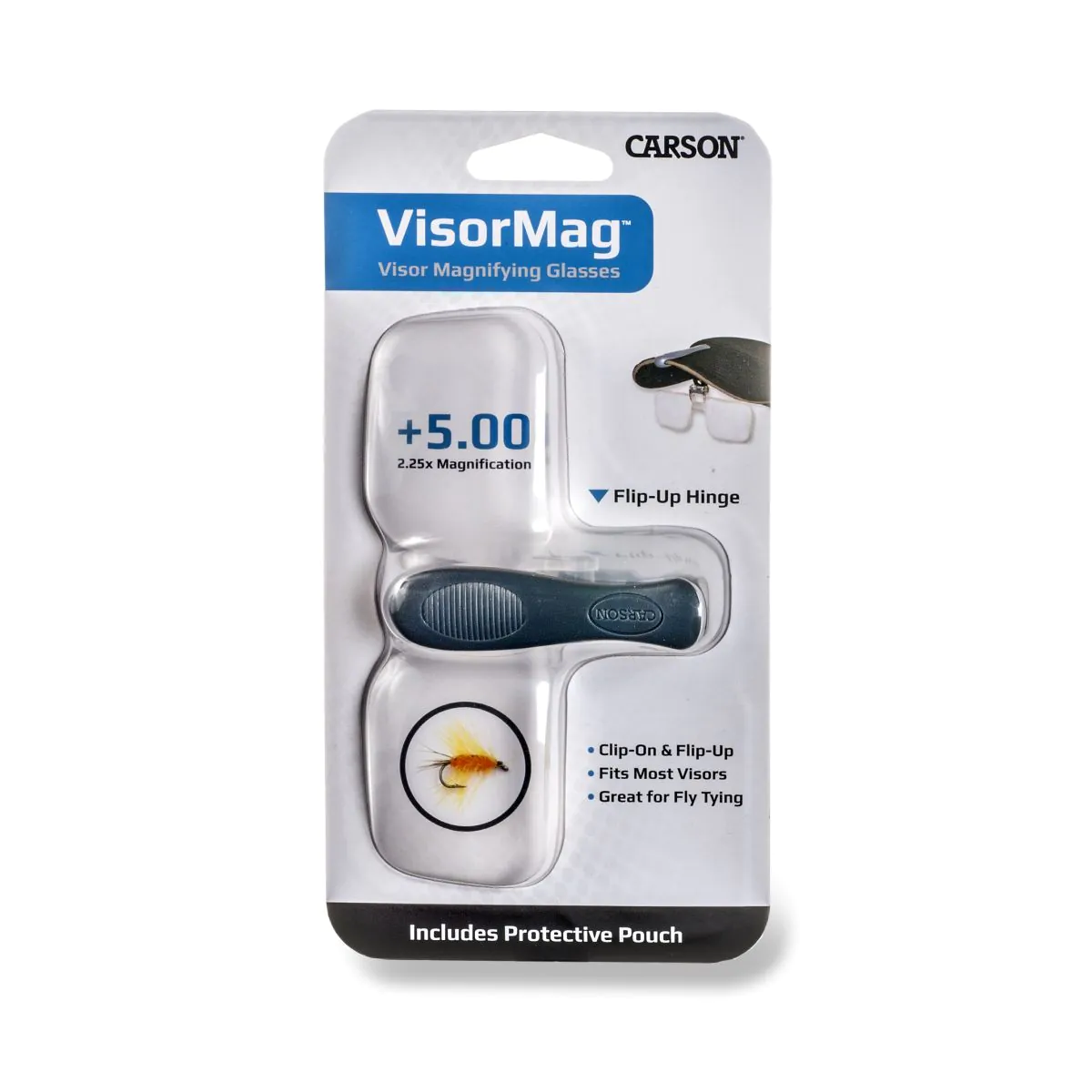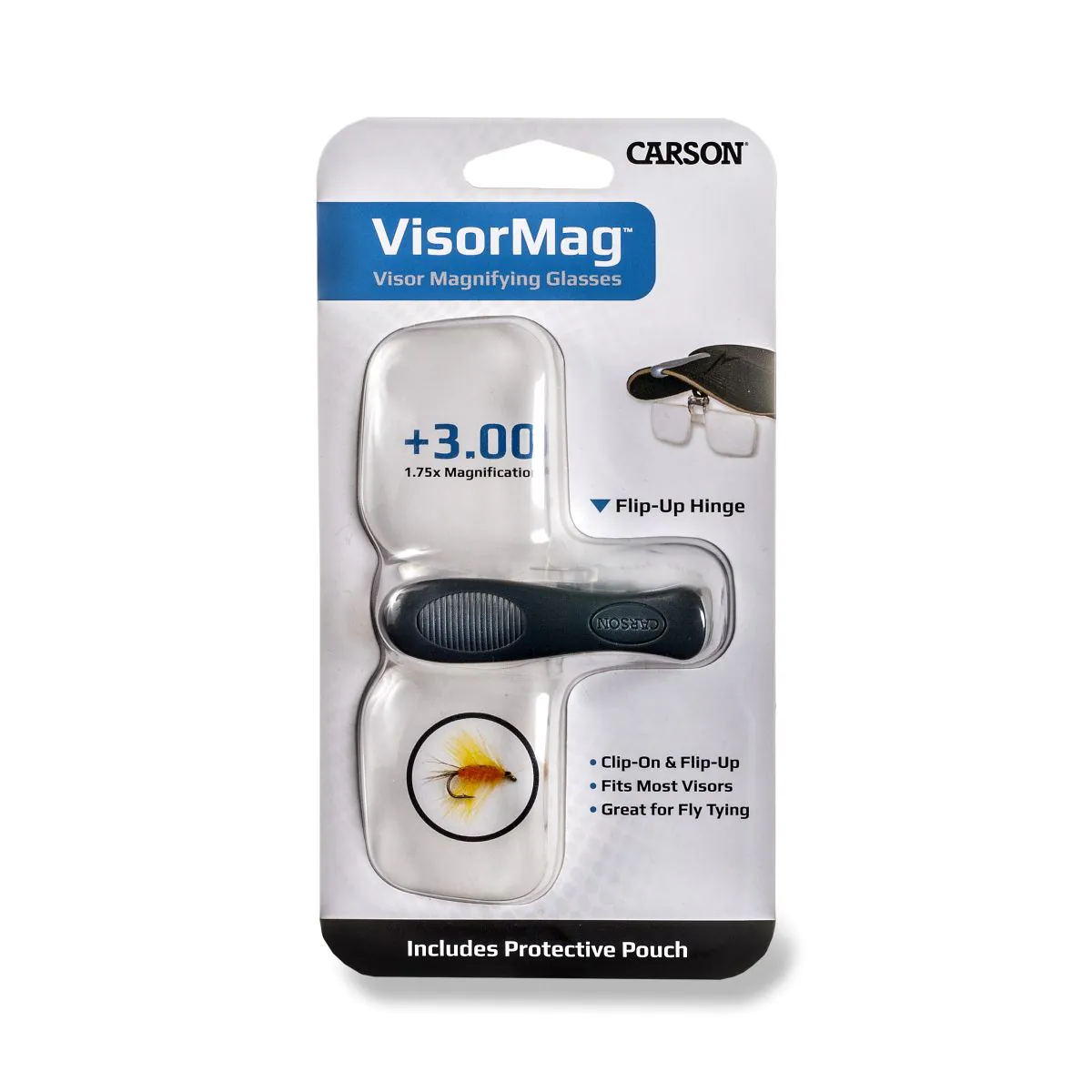 Die VisorMag™ Visor Magnifying Glasses sind klappbare, ansteckbare Vergrößerungslinsen, die an der Krempe der meisten Schirmmützen und Hüte befestigt werden können. Die Linsen sind sehr nützlich beim Einfädeln von Vorfächern ins Hakenöhr, aber auch beim Binden von Knoten. Die kristallklaren Acrylgläser, die mit einem schützenden Softetui geliefert werden, ermöglichen eine scharfe, verzerrungsfreie Sicht, mit der Sie selbst die feinsten Details mühelos erkennen können. Die Klapplinsen sind in verschiedenen Stärken von +3,00 Dioptrien bis +5,00 Dioptrien erhältlich und passen auf den Schirm der meisten handelsüblichen Kappen.