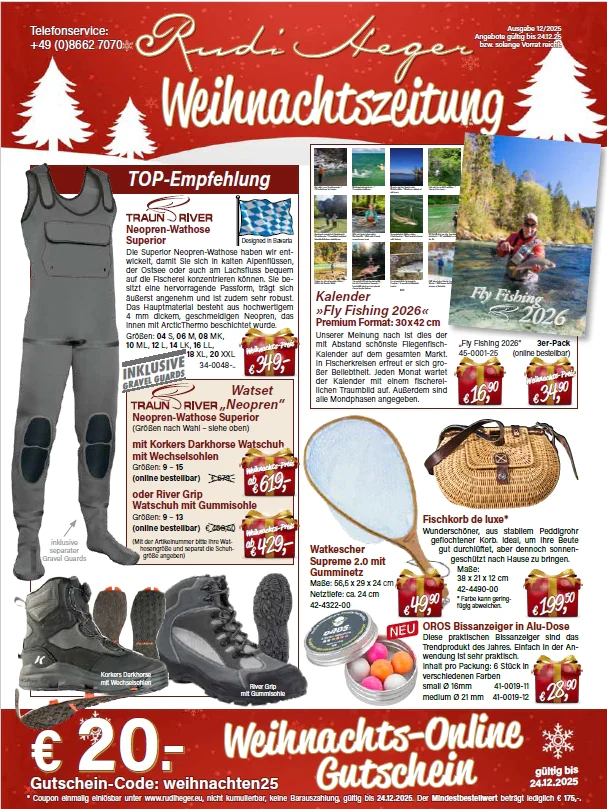 Hier finden Sie unsere alljährliche "Weihnachtszeitung" mit vielen hervorragenden Sonderangeboten, Empfehlungen und tollen Weihnachtsgeschenk-Ideen für Fliegenfischerinnen und Fliegenfischer!